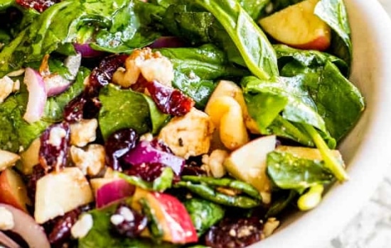 About Salad Recipe: This spinach apple salad is an excellent vegetarian recipe. It is both sweet and savory with the rich flavors of spinach, walnuts, and feta, and the sweet flavors of the apples and honey balsamic vinaigrette.