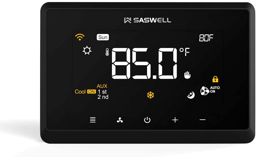 About Smart Thermostat: This thermostat is hassle-free and completely remotely controllable through the SASWELL app or directly with its touchscreen feature. And with its simple and modern design, it is an ideal thermostat for any room in the house.